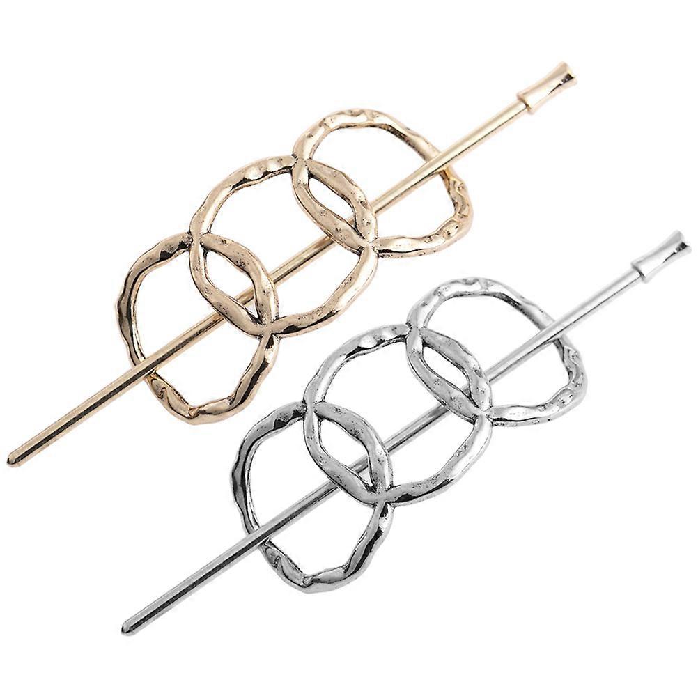 Metal Hairpin Chignon Hair Pin Women Daily Wear Alloy Assorted Color Lightweight 2Pcs