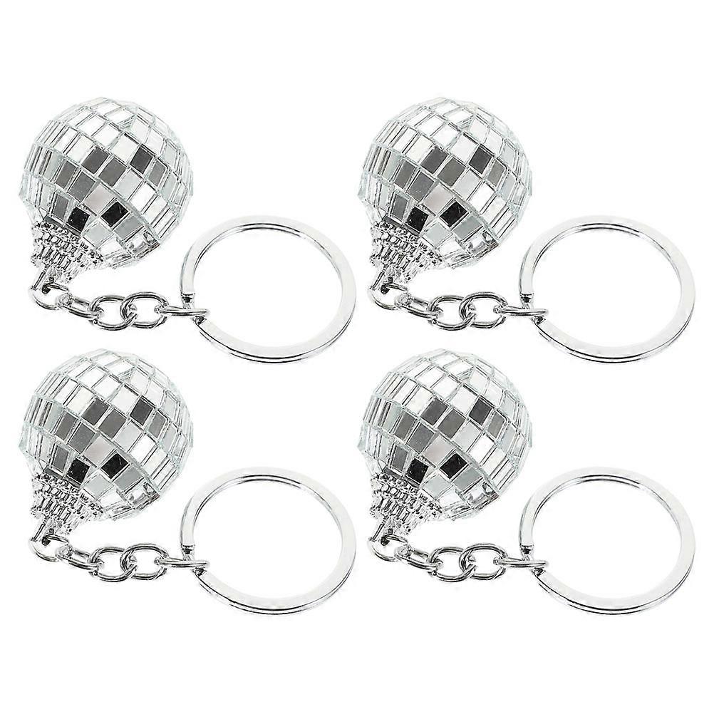 Disco Ball Keychain Mirror Pendant for Decoration 4Pcs Silver Plastic Zinc Alloy