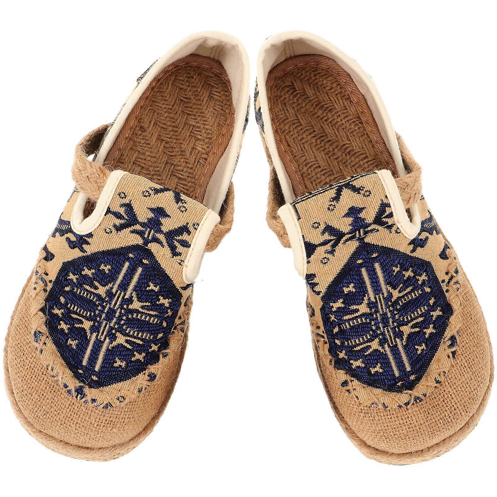 Ethnic Style Cloth Shoes 1 Pair for Casual Wear Dark Blue Cotton and Linen with Anti-Skid Stability