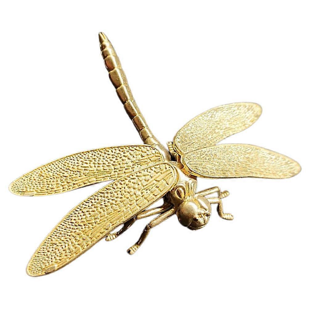 Golden Mini Brass Dragonfly Figurine for Decoration 1 Piece Vintage Brass Statue