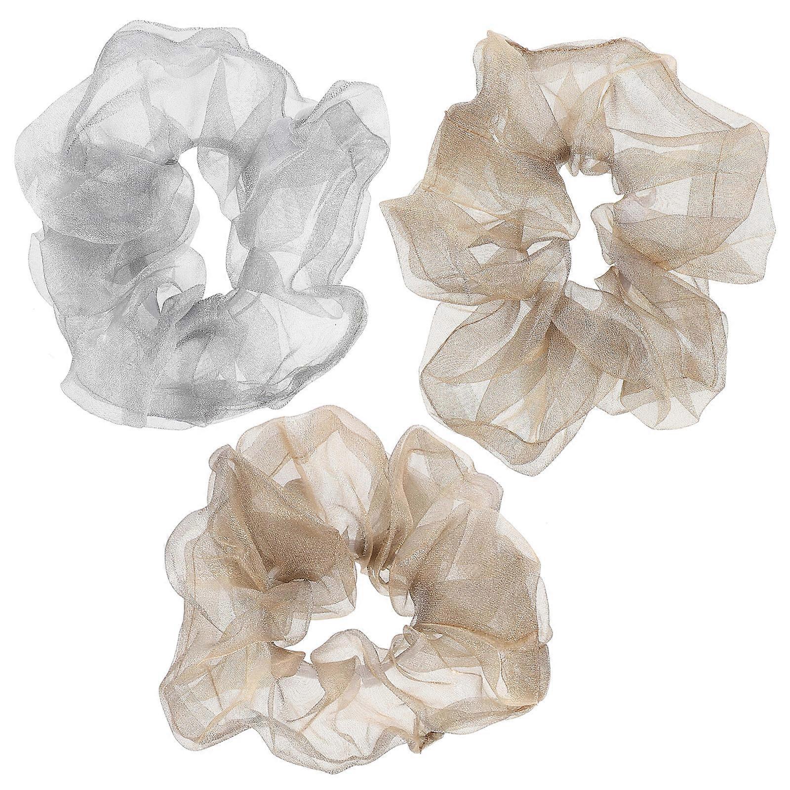 Glitter Sheer Hair Tie Elastic Hair Scrunchies Rope for Women 3 Pieces