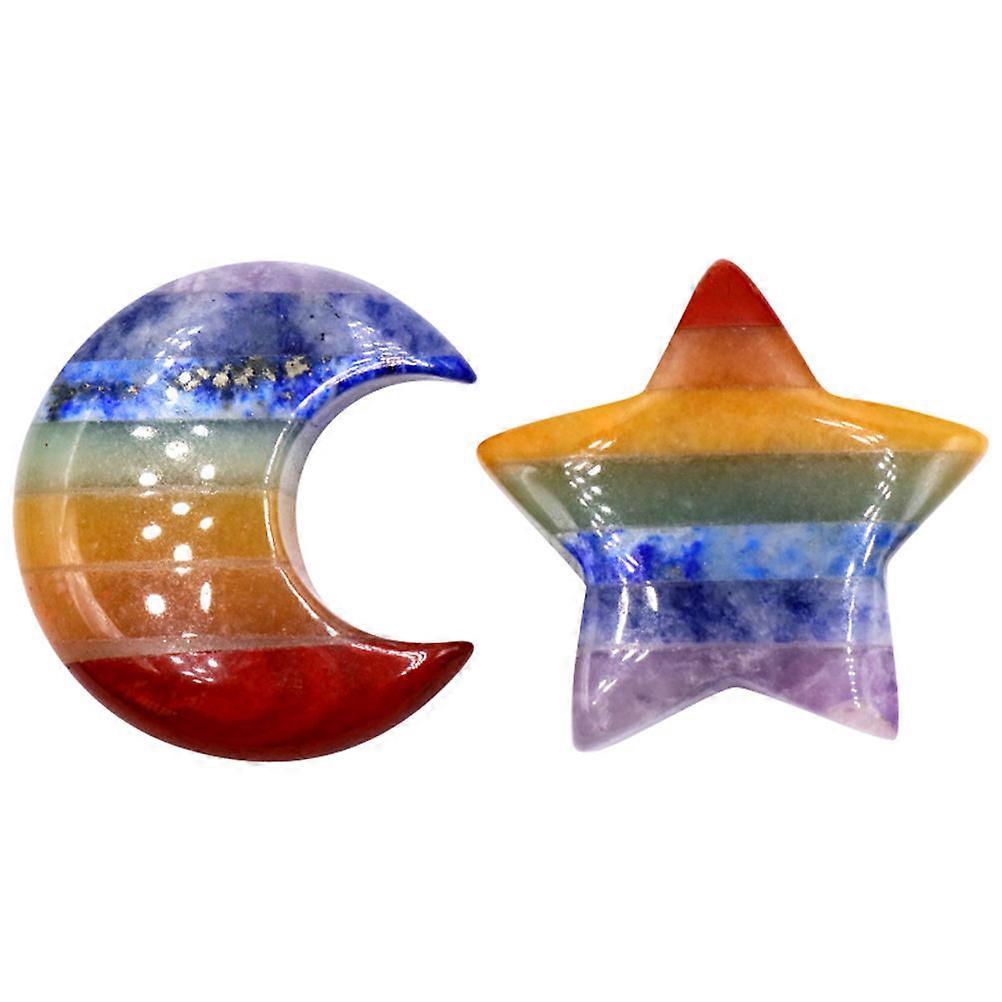 Stone Adornment Crystal Agate Ornaments for Home 2Pcs Colorful Moon Star