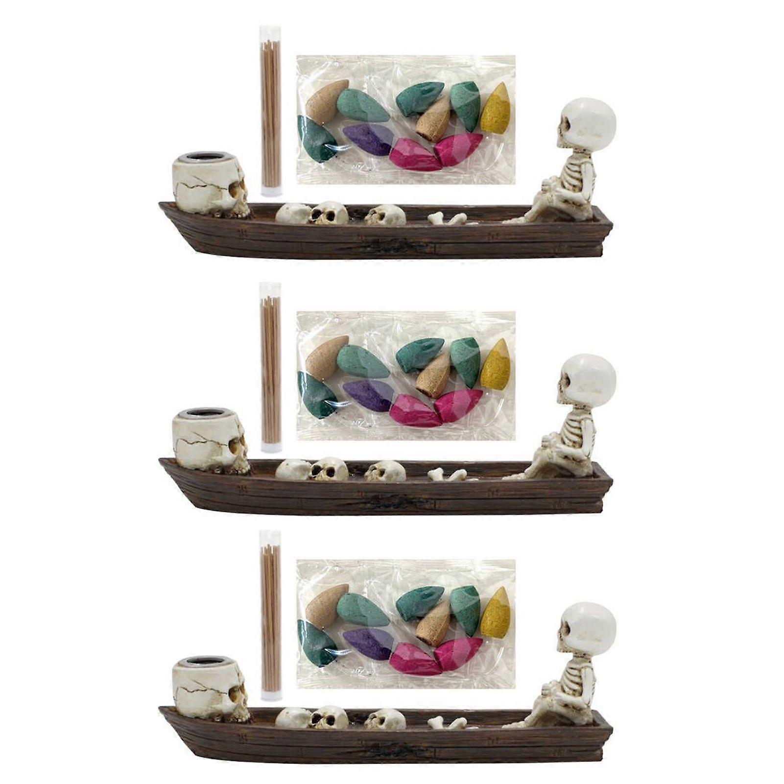 Skull Boat Incense Holder Gothic Incense Holder Ghosts Fishing On Boat Incense-Burner for Halloween Home Decor