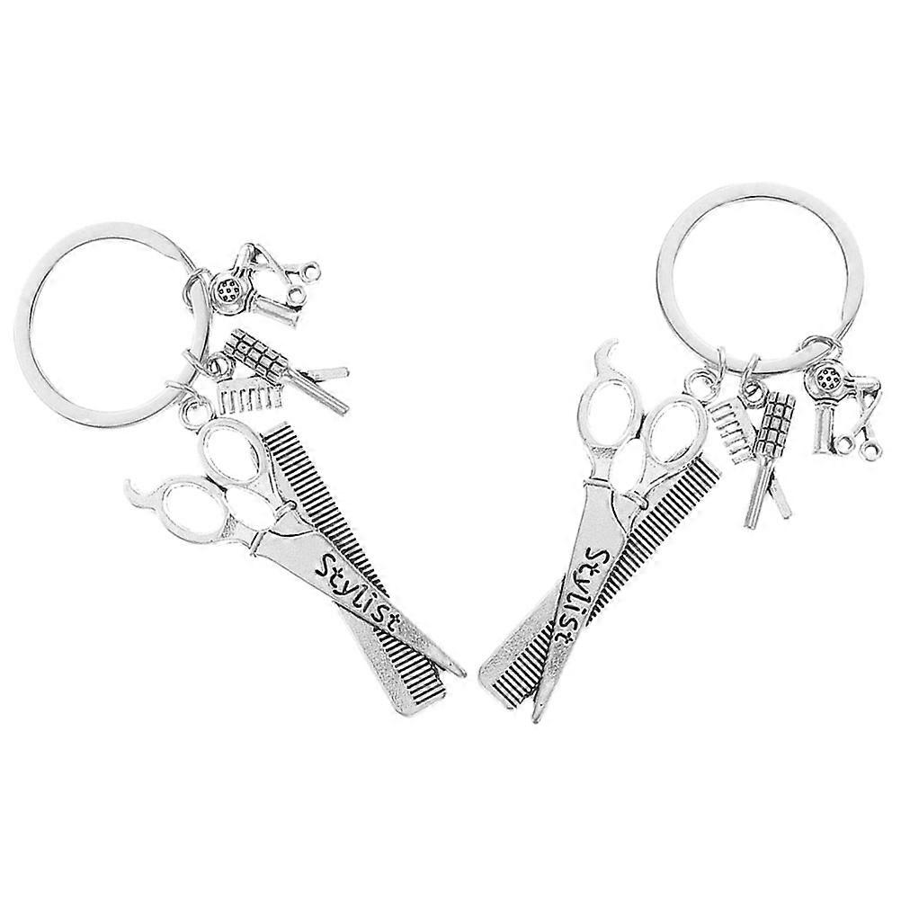 Keychain Hairdresser Zinc Alloy Hairdresser Key Rings for Keys 2Pcs Silver