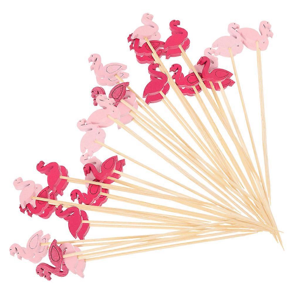 Flamingo Bamboo Skewer 100Pcs Assorted Color Adorable Design Decorative Toothpicks Skewers for Decor