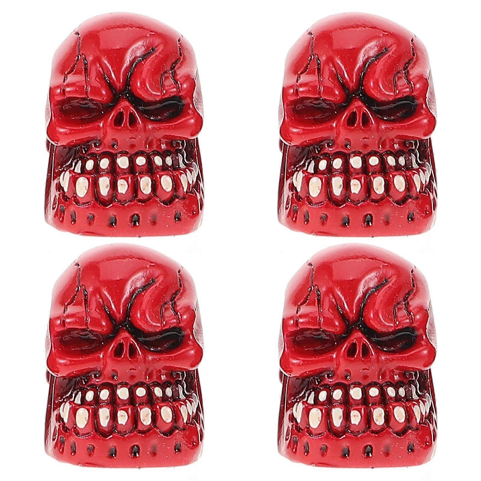 Skull Tire Valve Caps 4Pcs Red Resin Durable Valve Cover for Car