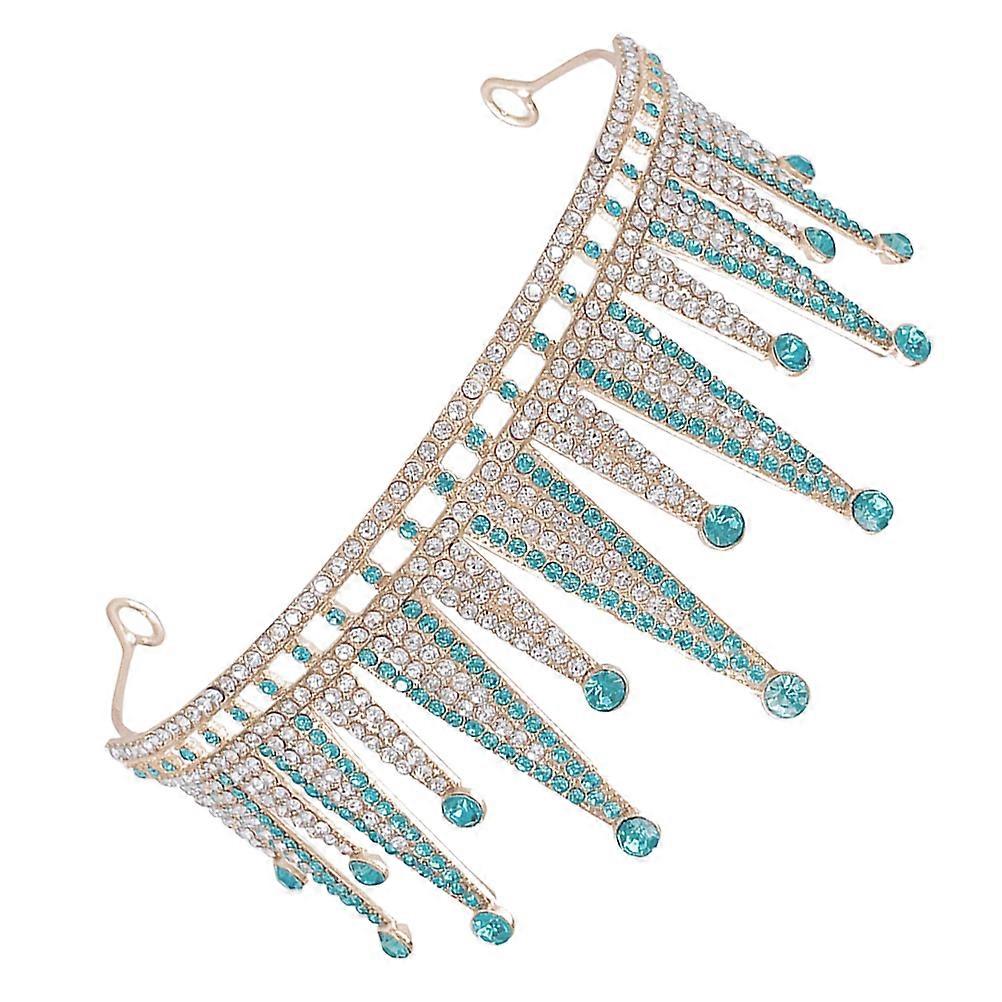 Rhinestone Crown Headpiece for Wedding Bridal Crown Sky-Blue Tiara