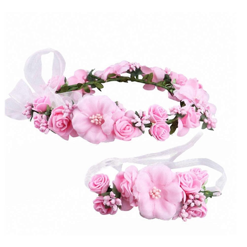 Pink Floral Crown Headband for Women Adjustable Flower Hairband Design Photo Prop 100% Cloth