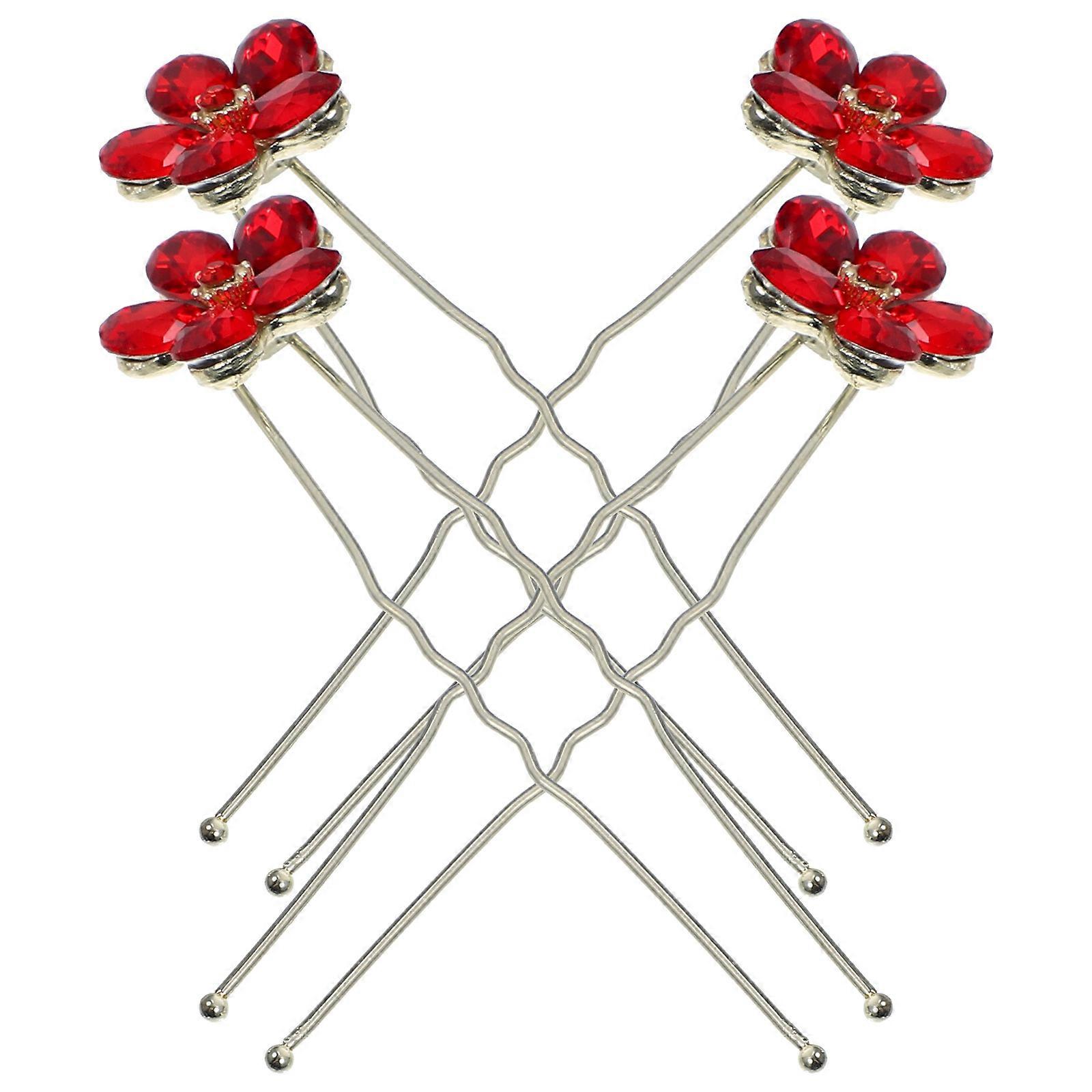 Rhinestone U Shaped Hair Accessories Wedding Hairpin For Women Elegant Design Red Color Attract Attention 4Pcs