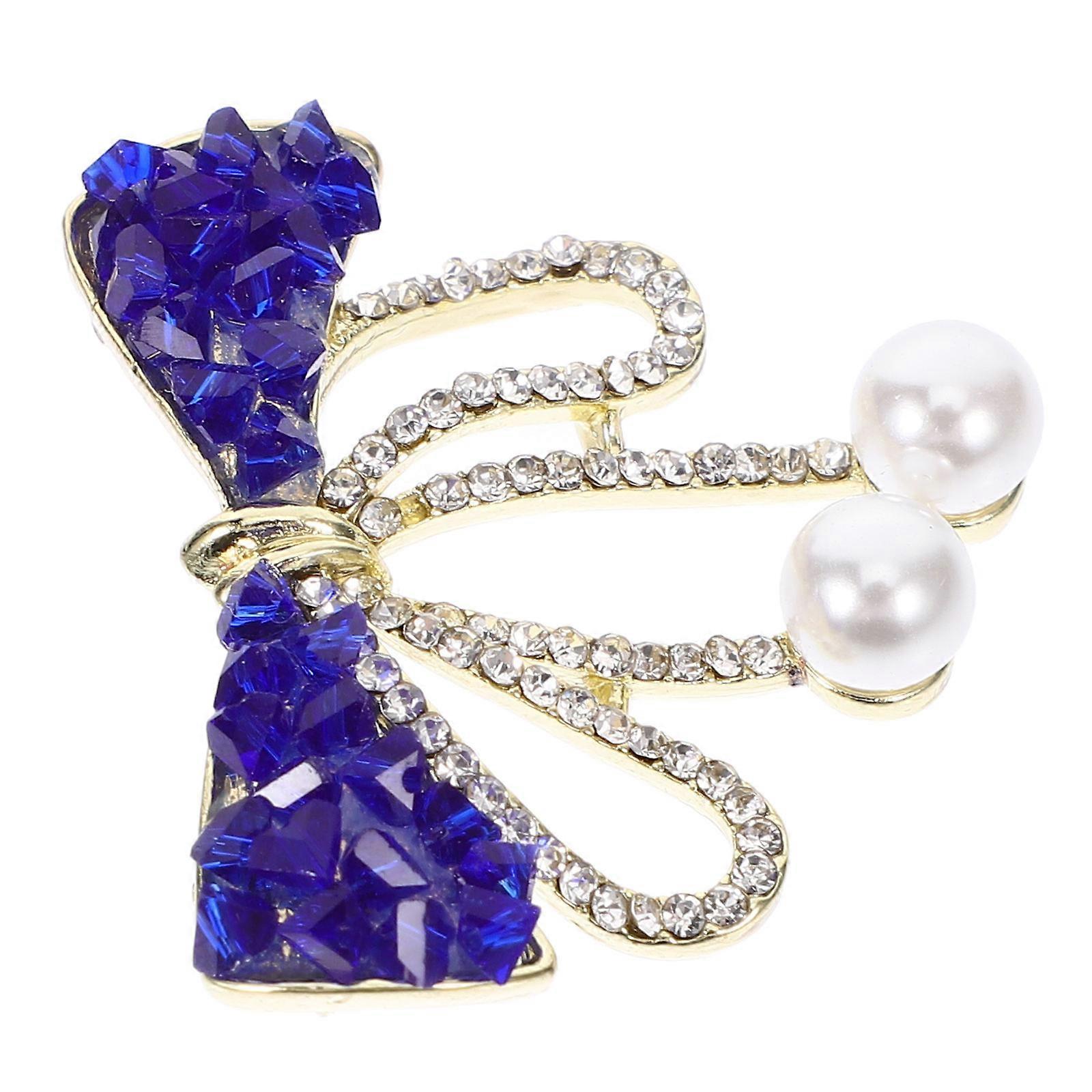 Rhinestone Bowknot Brooch Pin For Ladies Glamorous Formal Occasions Wedding Blue Decorative 1Pcs