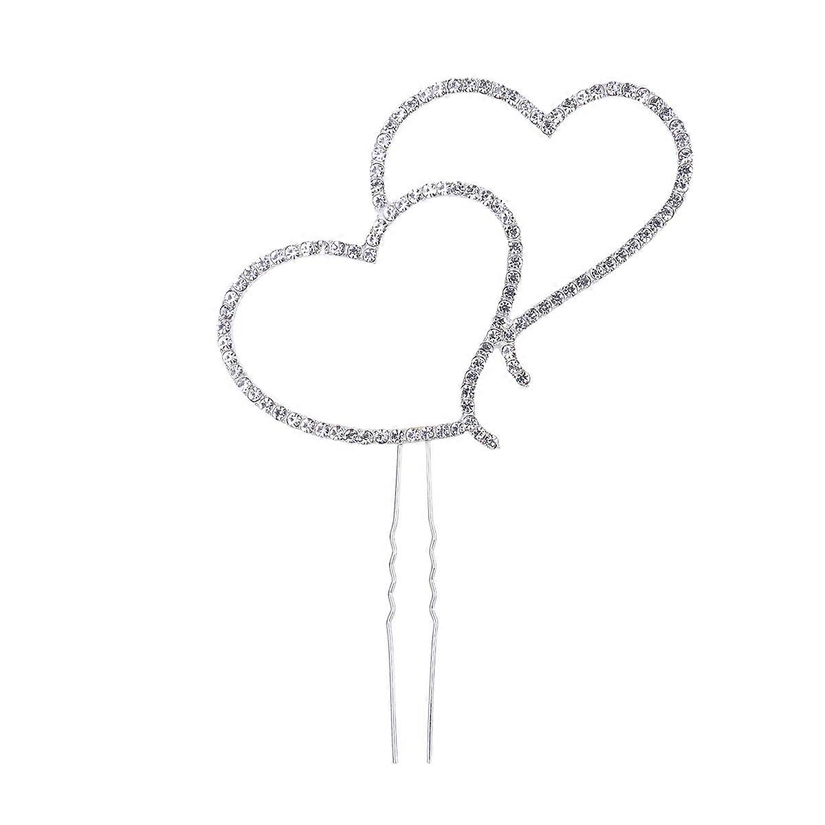 Rhinestone Love Heart Cake Topper for Wedding Anniversary Event Silver