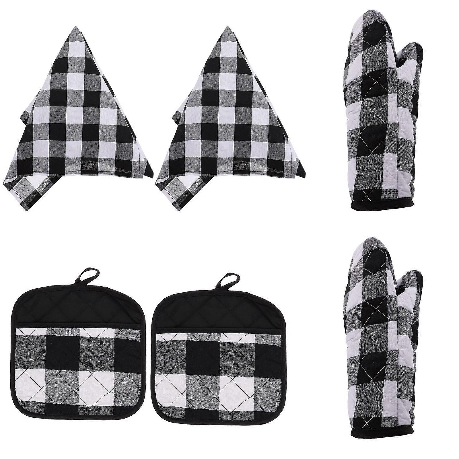 Kitchen Oven Heat Resistant Gloves with Cooking Mitt and Dishcloths 1Set