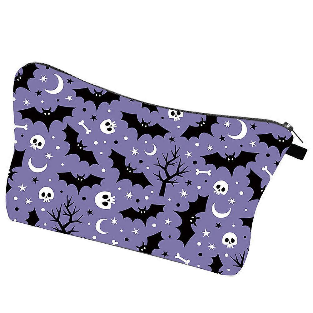 Purple Makeup Bag Halloween Pattern Zipper Pouch for Storage Use