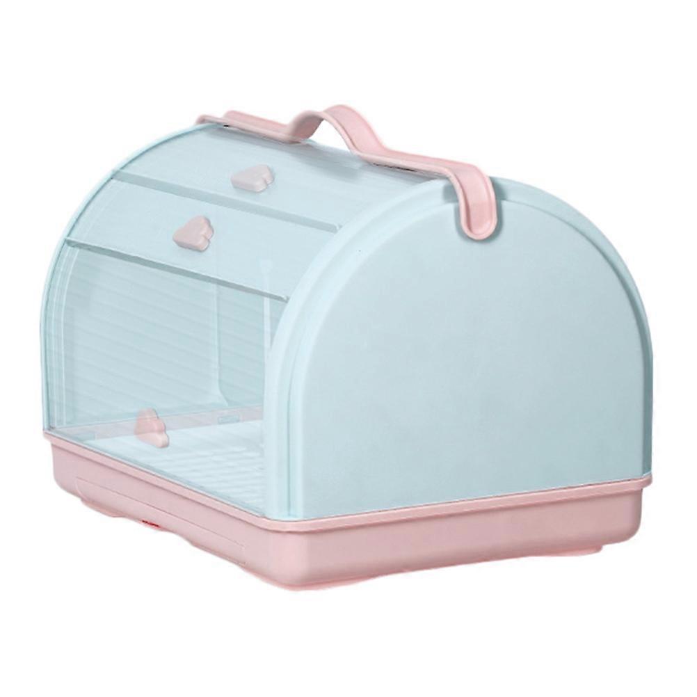 Plastic Dustproof Baby Tableware Container Sky-Blue with Detachable Draining Tray for Home Use