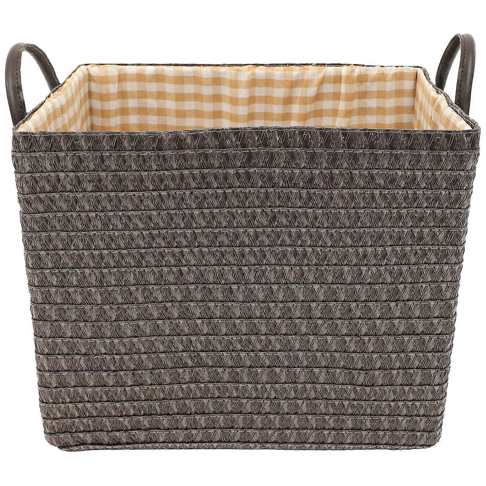 Coffee Woven Clothes Storage Basket with Handles for Closet Organization Lightweight and PP 12.5 x 8.5 x 15 inches