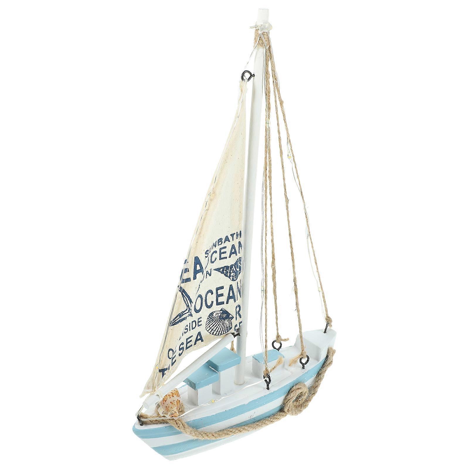 LED Sailboat Model Wooden Nautical Sailboat Ornament for Decor
