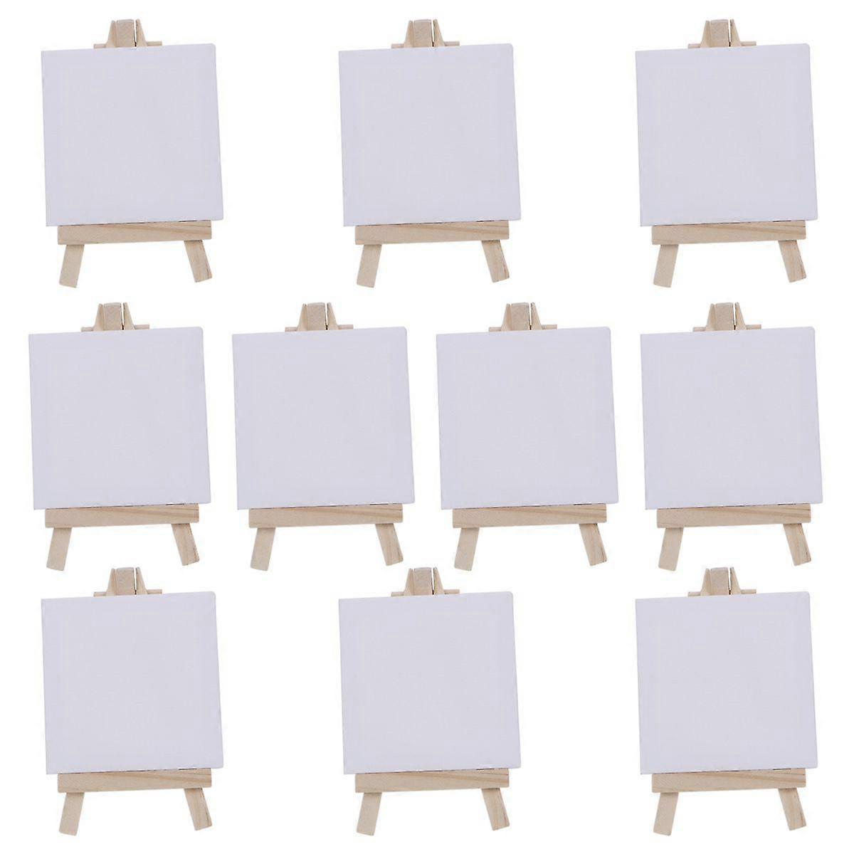 10PCS Mini Canvas Panel Wooden Easel Sketchpad Settings for Painting Craft Drawing Decoration present and Kids'Learning Education (As Shown)
