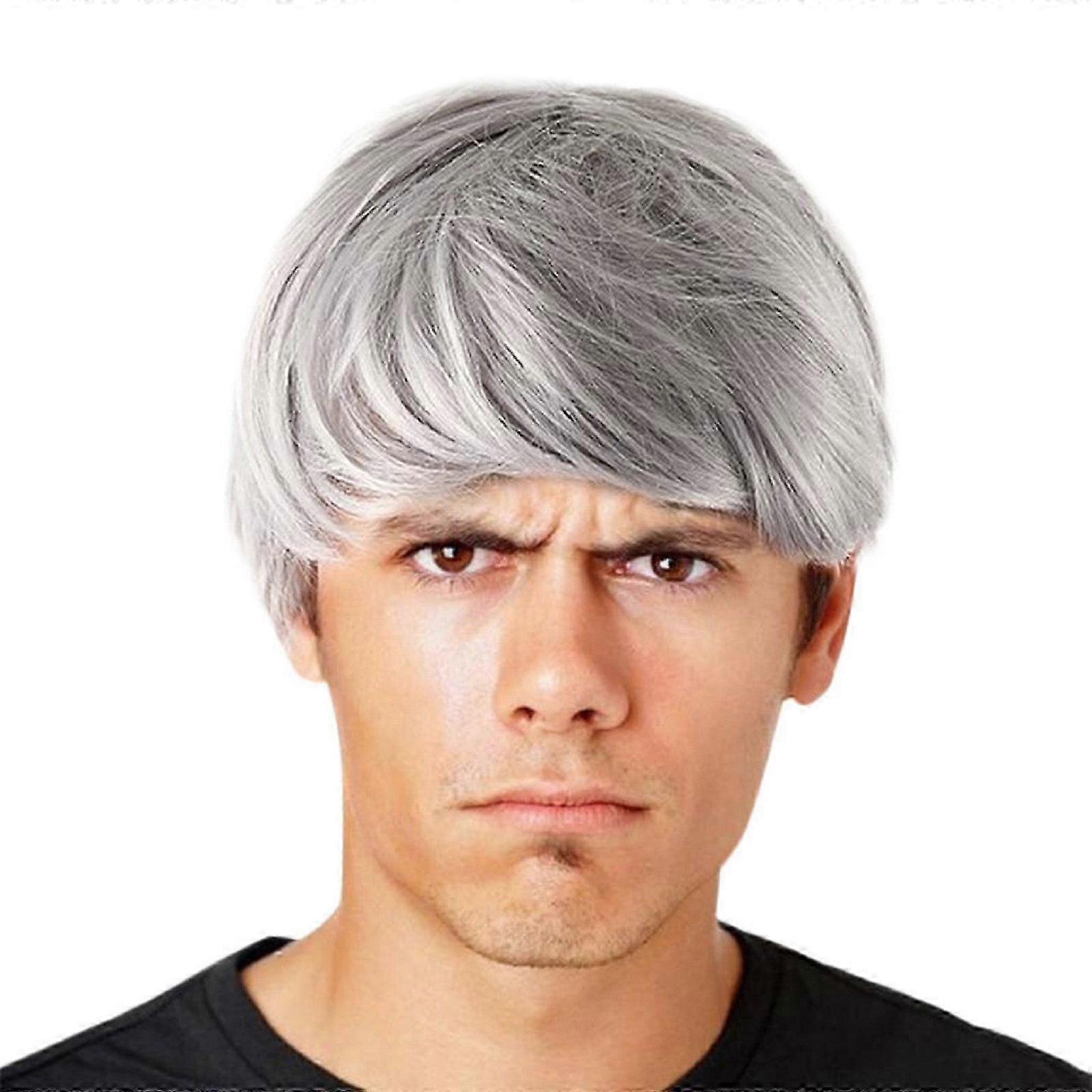 Gray Natural Short Curly Wig for Men Women Fashion Cool Party Cosplay