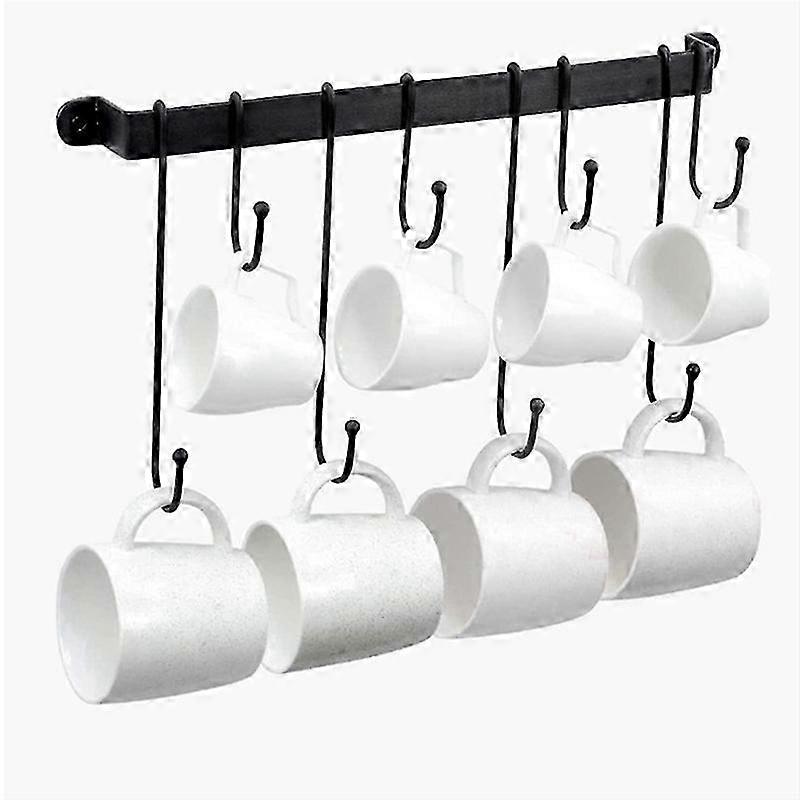 17 Inch Coffee Mug Rack Wall Mounted Black Cup Holder with Hooks for Kitchen Bar Decor