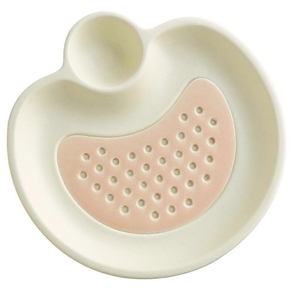 Ceramic Dumpling Plate with Sauce Compartment for Home 1 Piece Beige