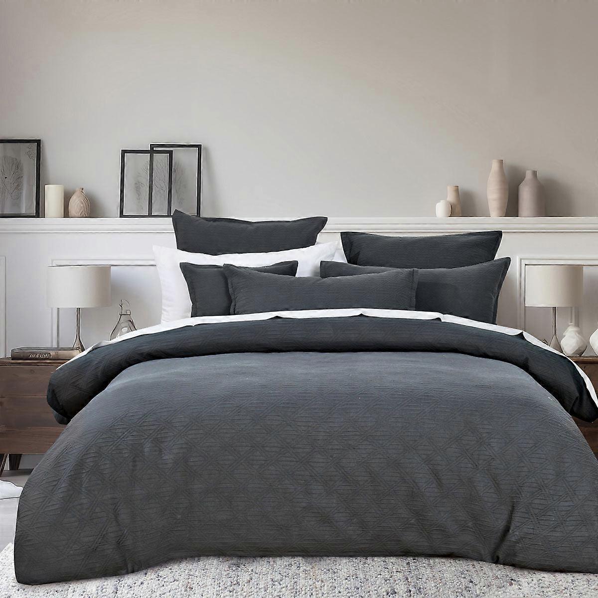 Give Your Bedroom A Laid-Back Lived-In Feel With The Bianca Hallston Charcoal Pre-Washed Cotton Quilt Cover Set. It Is The Kind Of That Looks Effortlessly Cool And Feels Even Better The Moment You Hop In. This Set Comes In Charcoal Shade That Is Modern Versatile And Easy To Style With Other Colours And Textures. The Simple Clean Design Makes It A Great Pick For Both Minimalist And Casual Interiors.