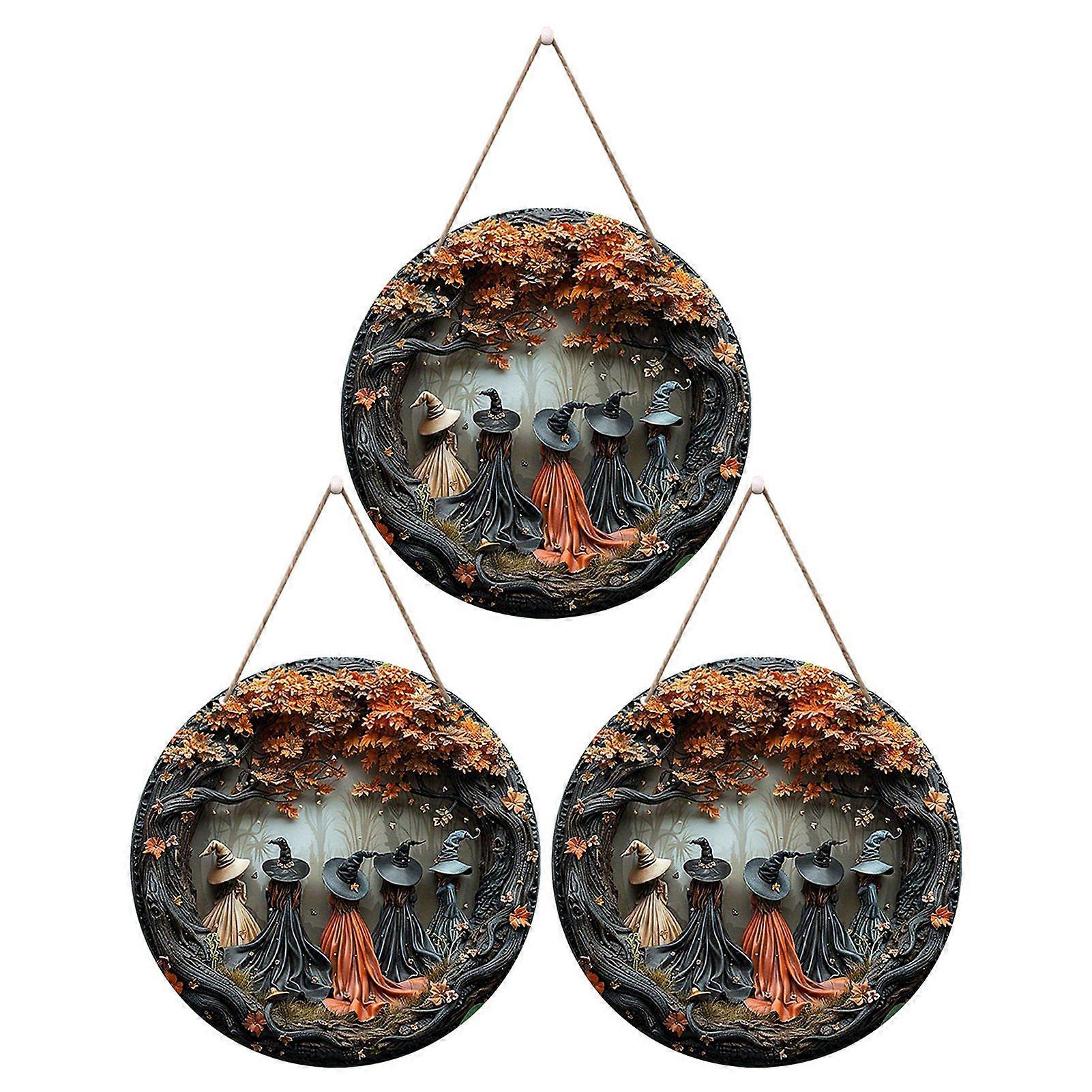 Witch Pattern Wooden Hanging Sign 2D Relief Design Round Wooden Wreath Sign Ideal Festival Witch Decorations for Yard Door Balcony Decor