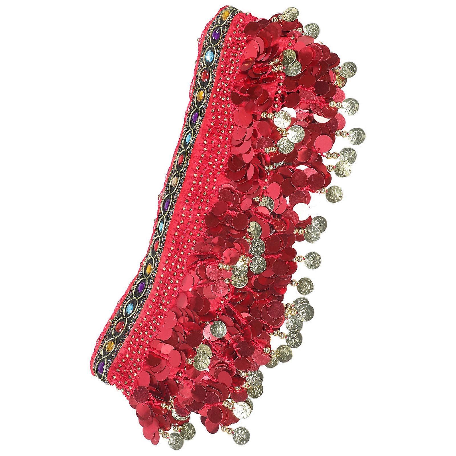 Belly Dancing Hip Scarf Decorative Skirt Red Chiffon Curved Design for Children Adults 1Pack