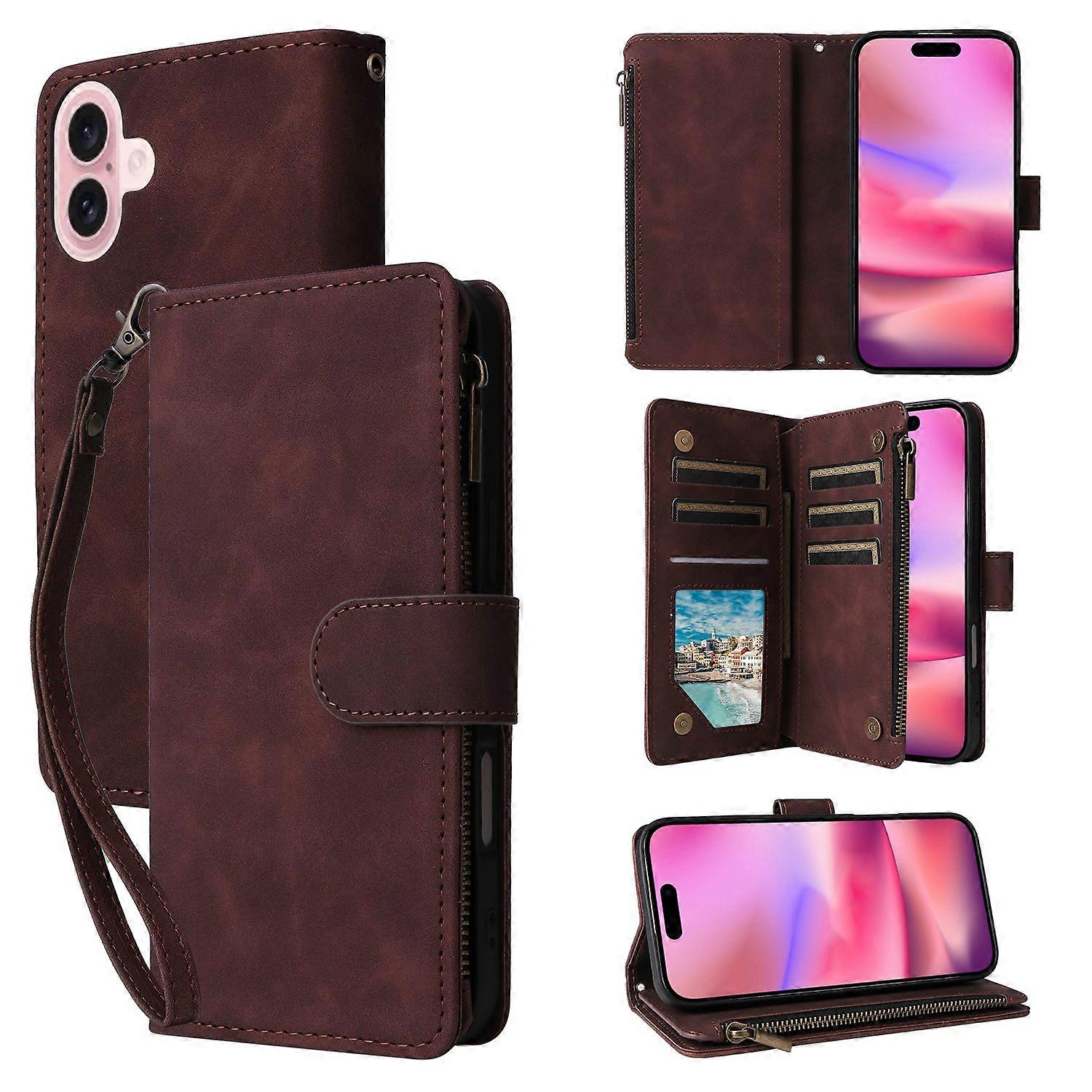 For iPhone 17 Case Zipper Wallet Multiple Card Slots Leather Phone Cover with Wrist Strap