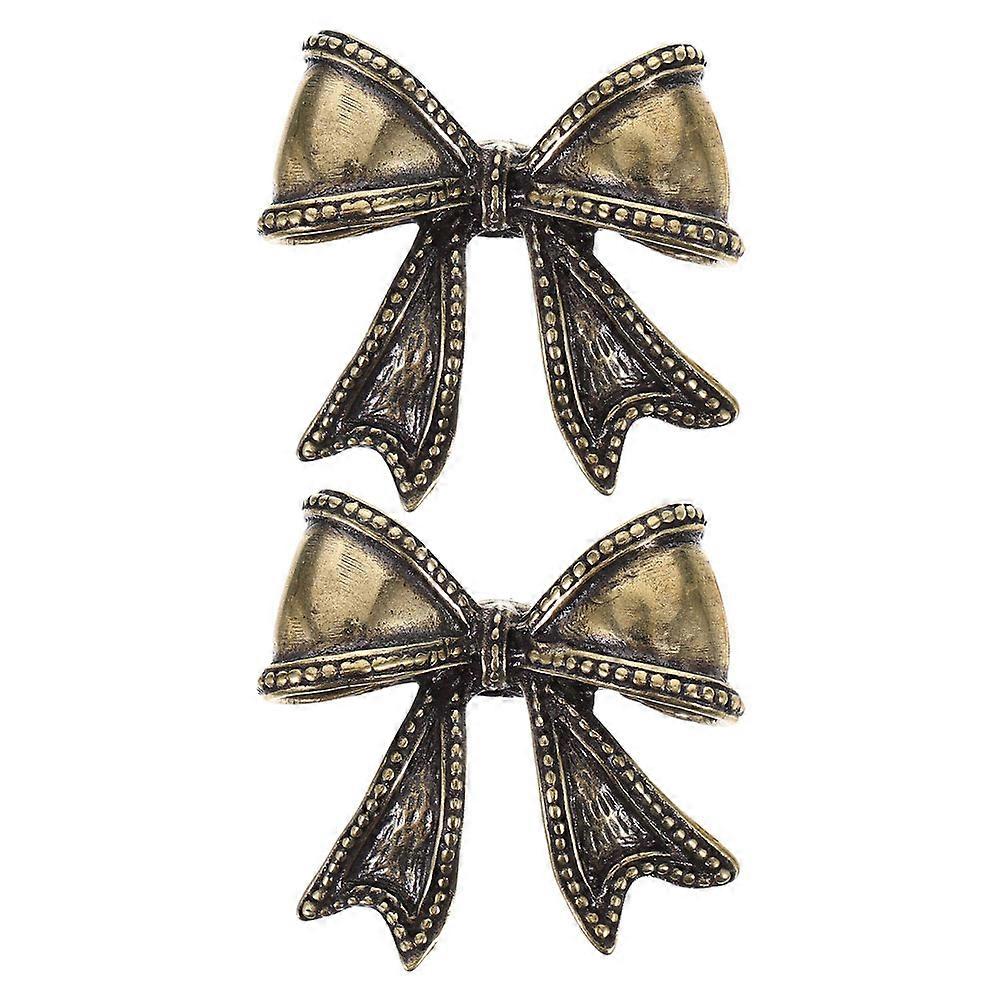 Light Brown Brass Bowknot Door Handles for Cabinet Drawer Use 2Pcs Bow Shape