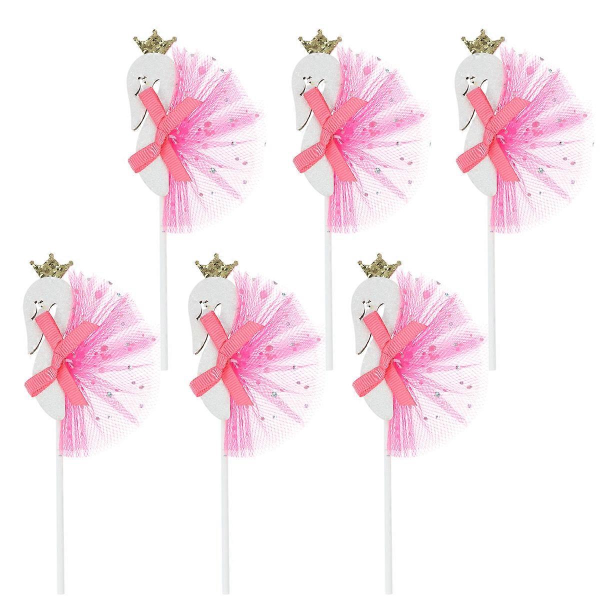 Party Favors Swan Bow Crown Cupcake Muffin Food Picks In Rosy Color For Women And Children 6Pcs