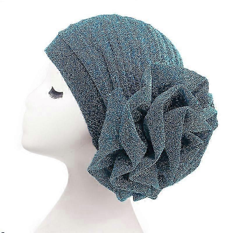 Women Glitter Scarf Turban Cap Ladies Flower Hat