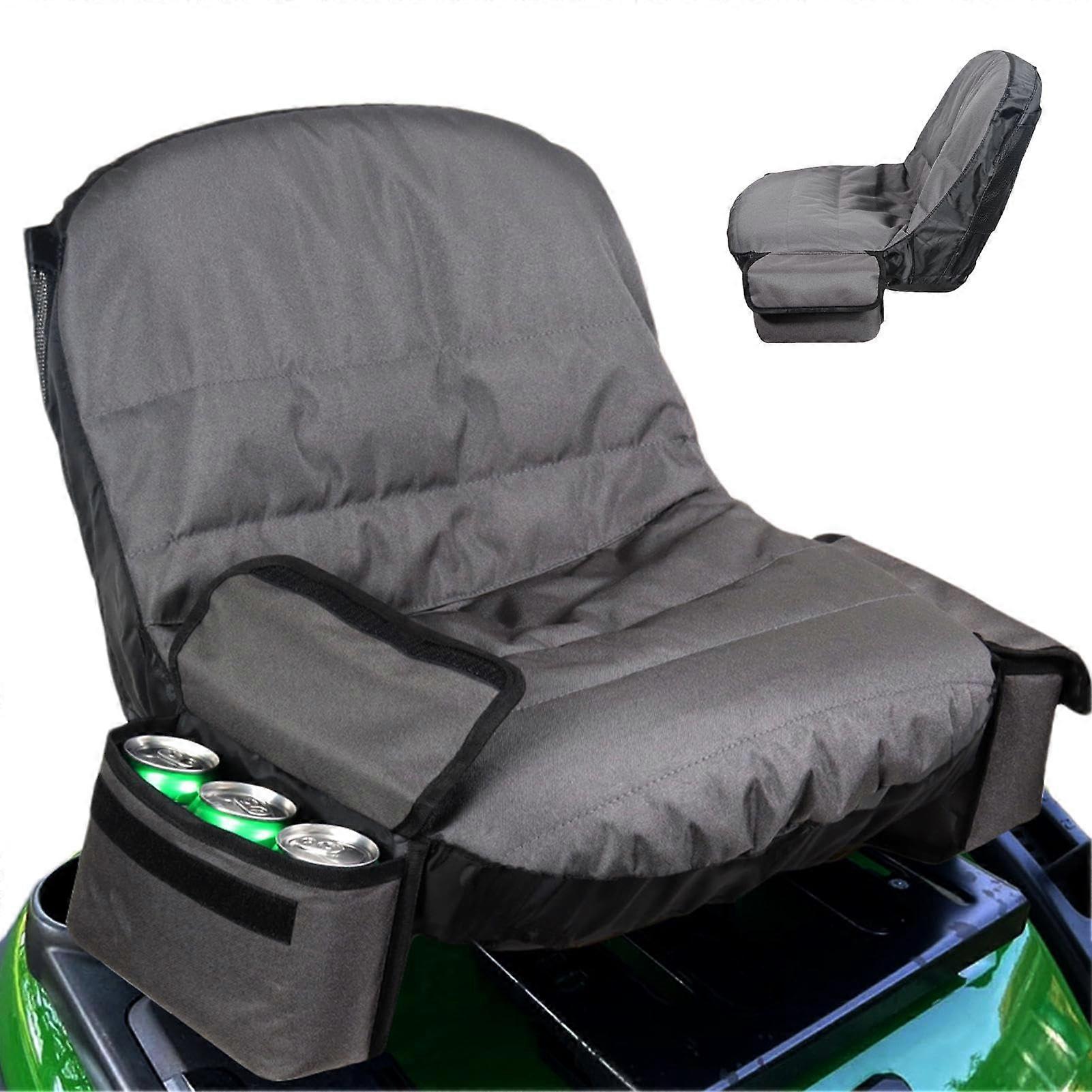 - Non-slip protection: This seat cover uses a back fastening buckle and non-slip surface to increase safety by reducing movement and enhancing the anti-slip buffer effect. - Organized mower: The back pocket provides easy storage for essential tools and equipment, keeping them within reach for a smoother mowing experience. - Very convenient: An insulated drink bag and a dedicated phone holder let you stay hydrated and connected during work, with hot or cold drinks kept at the right temperature. - Durable and protective: Made from 600D Oxford fabric, the seat cover resists wear and scratches, stays crack-free, and offers waterproof, breathable protection. - Use scenarios: - Residential lawn mowing and estate maintenance: keep tools handy and ride securely for longer sessions. - Farms and professional grounds maintenance: rugged construction withstands frequent use while keeping items accessible. - Hot weather mowing: insulated drink bag helps you stay hydrated and the phone holder keeps you connected.