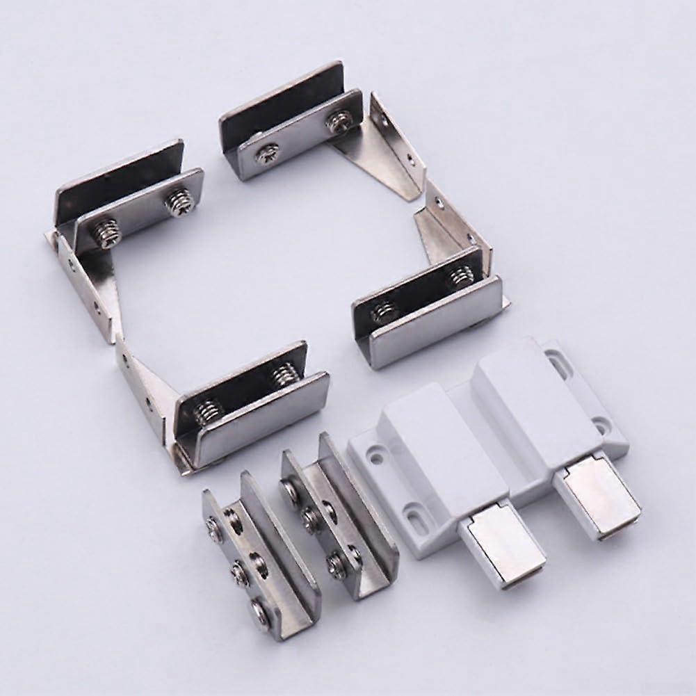 High Strength Stainless Steel Hinge Set with Double Head Magnetic Catch for 10mm Glass Doors - Double Silver Finish