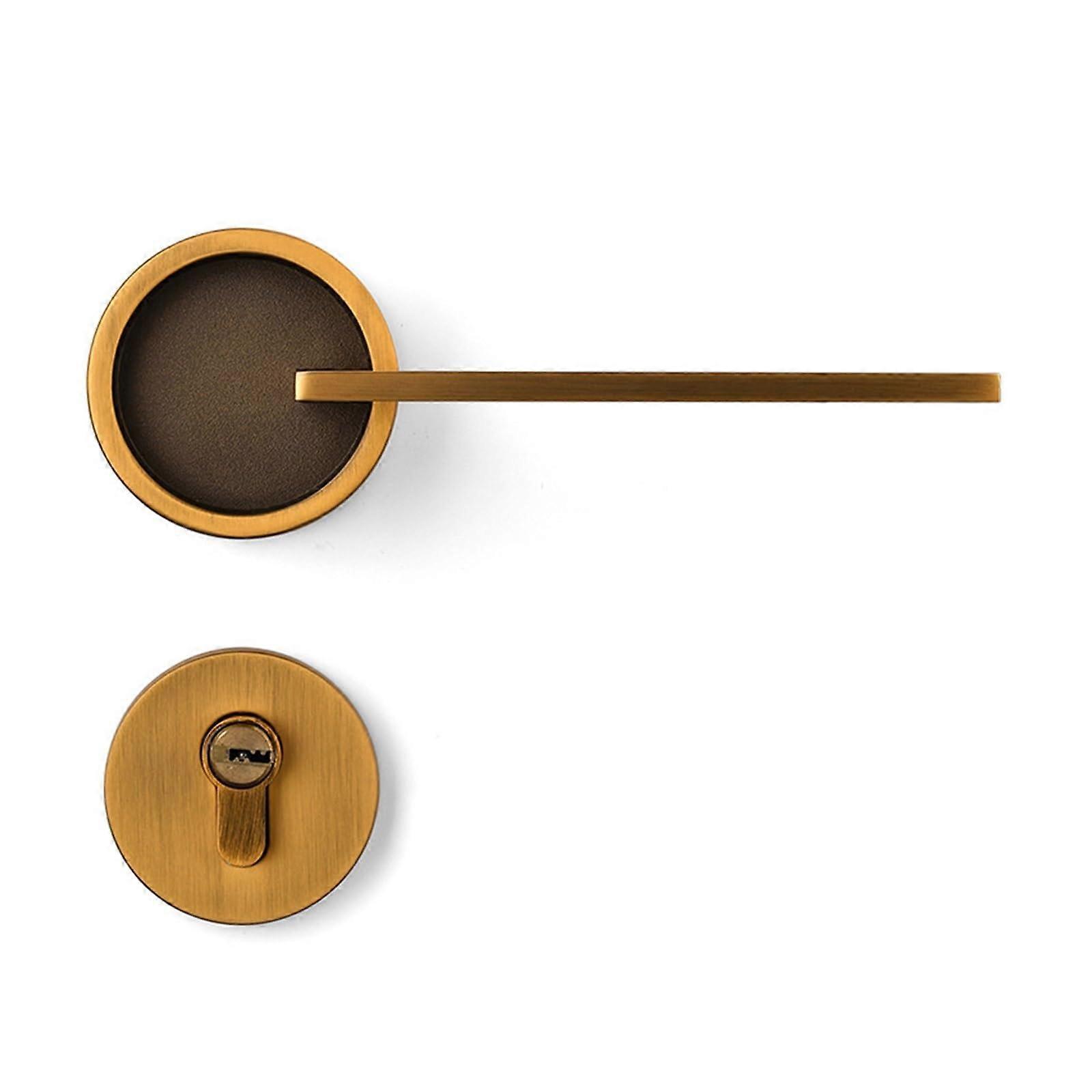 Yellow Bronze Door Lock For Bedroom, Interior Silent Mechanical Wooden Door Lock, Modern Style American Door Knob Lock