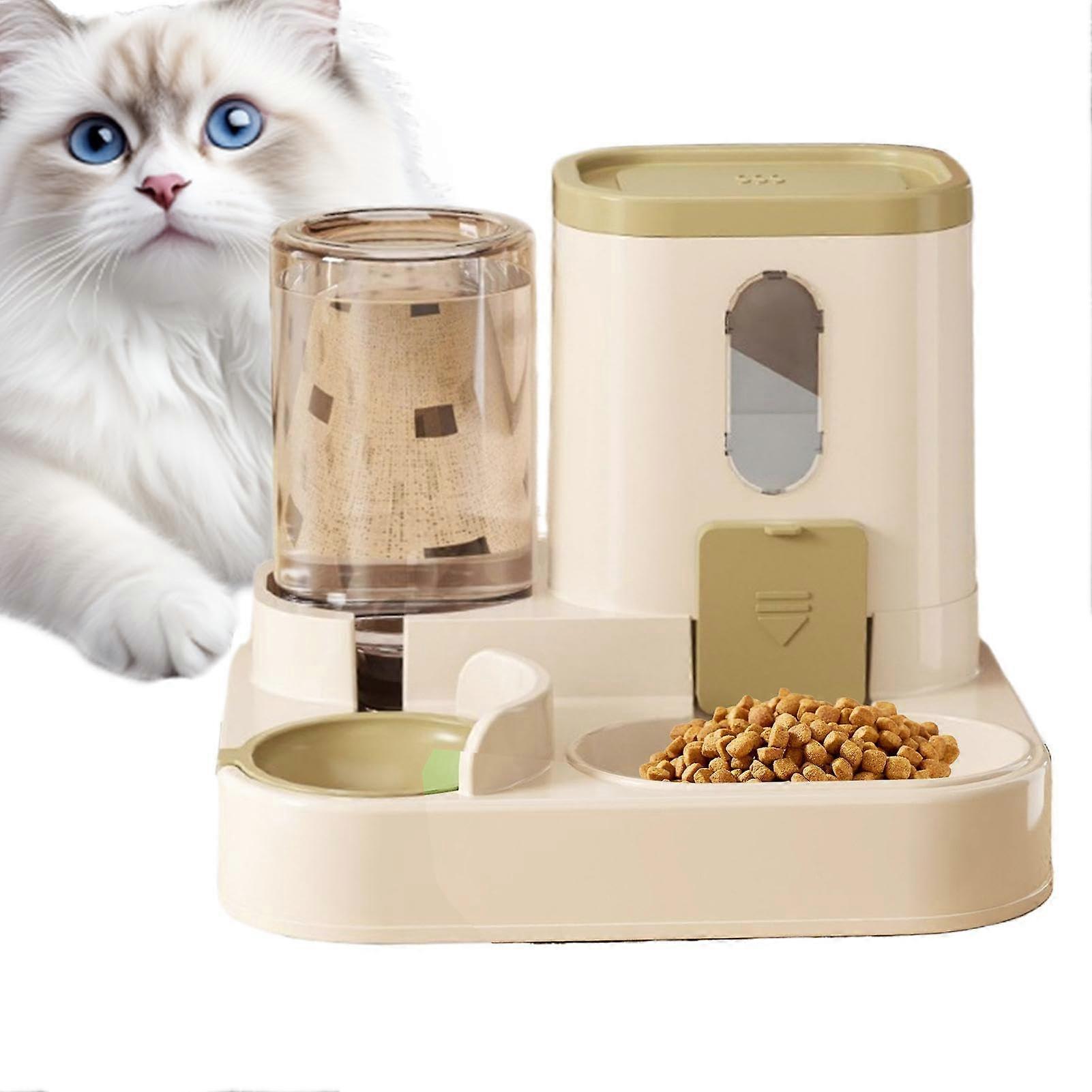 Automatic Cat Food Dispenser with Water Bowl | Beige Pet Feeder Set for Cats, Dogs, and Small Animals | Automatic Food and Water Station