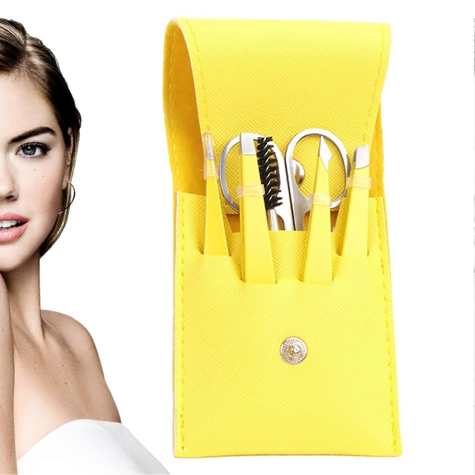 Eyebrow Grooming Kit with Travel Case, 6-Piece Hair Removal Set for Ingrown Hairs, Lemon Yellow, Includes Eyebrow Scissors