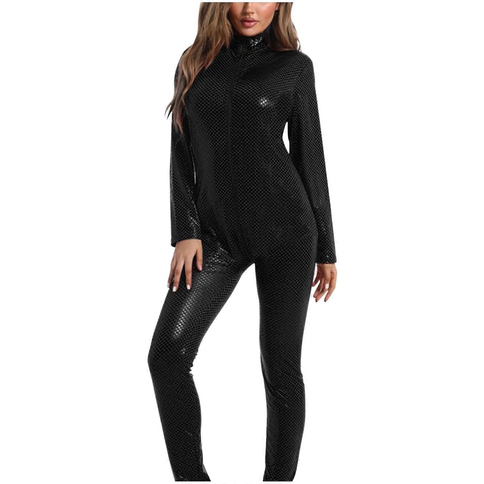 Latex Bodysuit Women Sexy Latex Catsuits for Women Black XXL