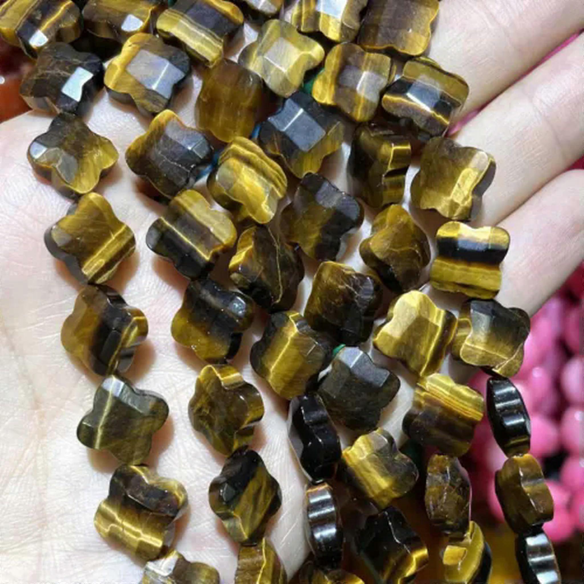 Faceted Natural Tiger Eye Agate Chalcedony Loose Beads 14mm - Pack of 14 Premium Jewelry Making Supplies