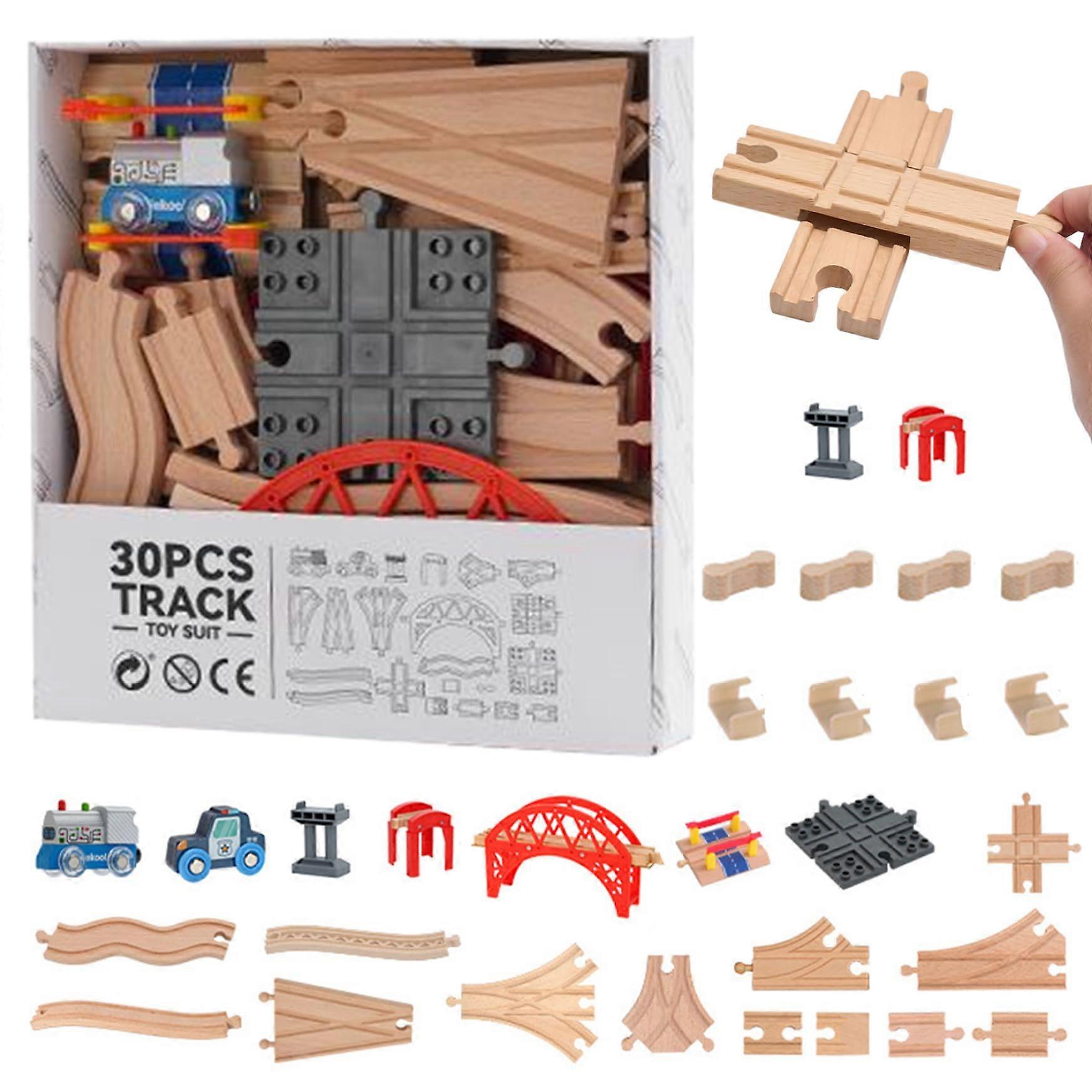 30pcs Wooden Train Set for Toddlers 3+ | Buildable Track with Toy Cars | Early Education Learning Toys