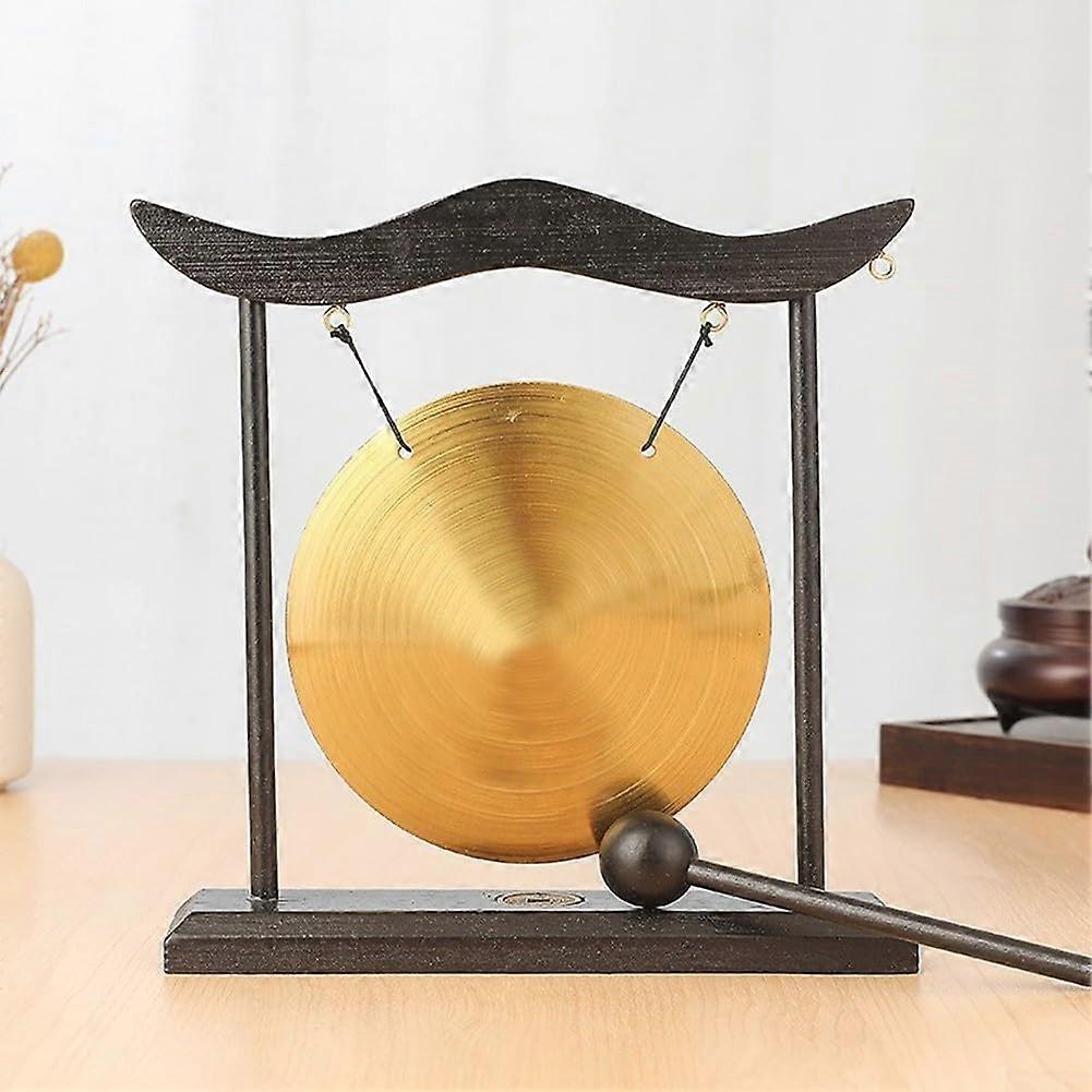 - ELEGANT DESIGN: This mini table bell features a meticulously crafted wooden base and frame, showcasing traditional Chinese patterns that complement any home decor and add a touch of sophistication. - COMPLETE SET: The package includes a wooden frame, a copper disc, and a wooden hammer. Everything you need to enjoy the calming sounds of the gong is provided, making it convenient and ready to use right out of the box. - VERSATILE USAGE: This gong serves multiple purposes. It can be used as an eye-catching decorative piece for your living space, an innovative gift for holidays and special occasions, or as a tool for meditation and spiritual healing practices. - MATERIAL & PERFORMANCE: Constructed with high-quality wood and copper, this gong not only looks stunning but also produces a rich, resonant sound that enhances relaxation and mindfulness. - USE SCENARIOS: 1. Use it in your meditation space to signal the beginning and end of your practice, helping to focus your mind and create a serene atmosphere. 2. Employ it during festive gatherings or special occasions to announce events or create a joyful ambiance, impressing your guests with its unique charm. 3. Display it as a centerpiece in your home or office, where its artistic design and soothing sounds can elevate the overall environment. This mini table bell combines beauty, functionality, and versatility, making it a valuable addition to any setting.