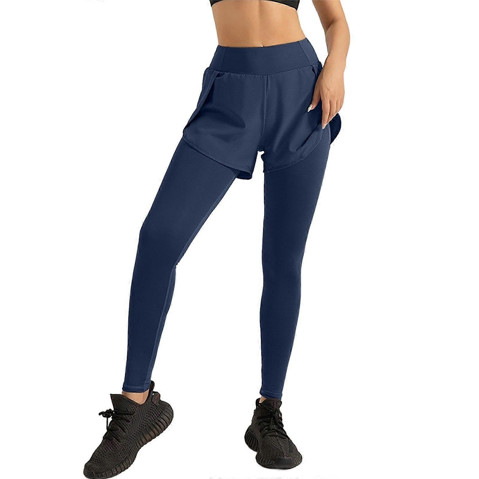 Women 2-In-1 Sport Leggings With Shorts, Long Length, High Waist, Breathable Opaque Stretch, Blue, Size M, Gym & Training