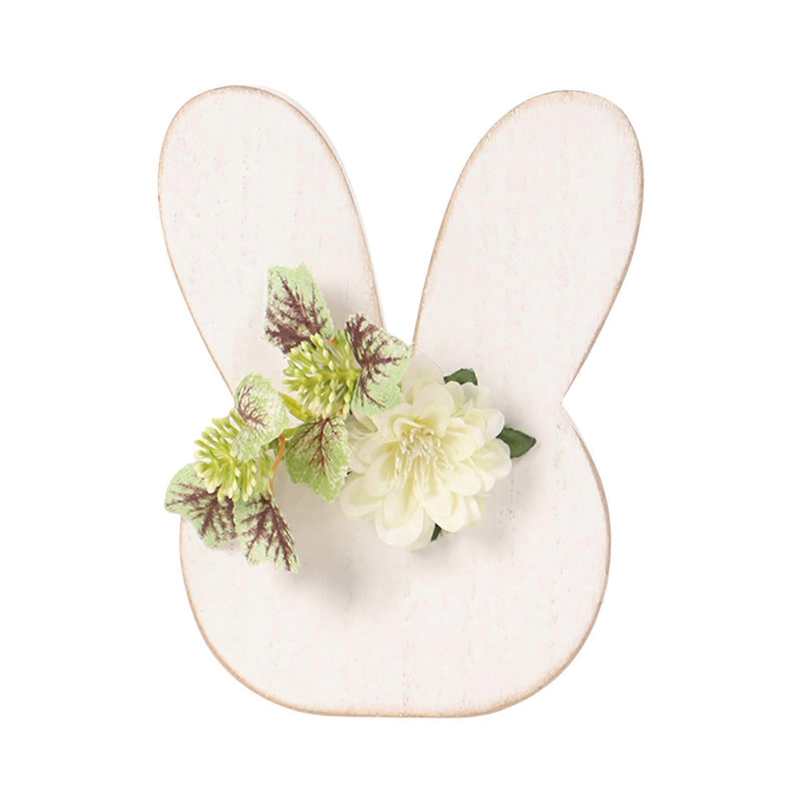 Easters Bunnies Figurine Table Centerpieces Wooden Sign with Flower Bowknot for Spring Home Tabletop Tiered Tray Decors Multicolor