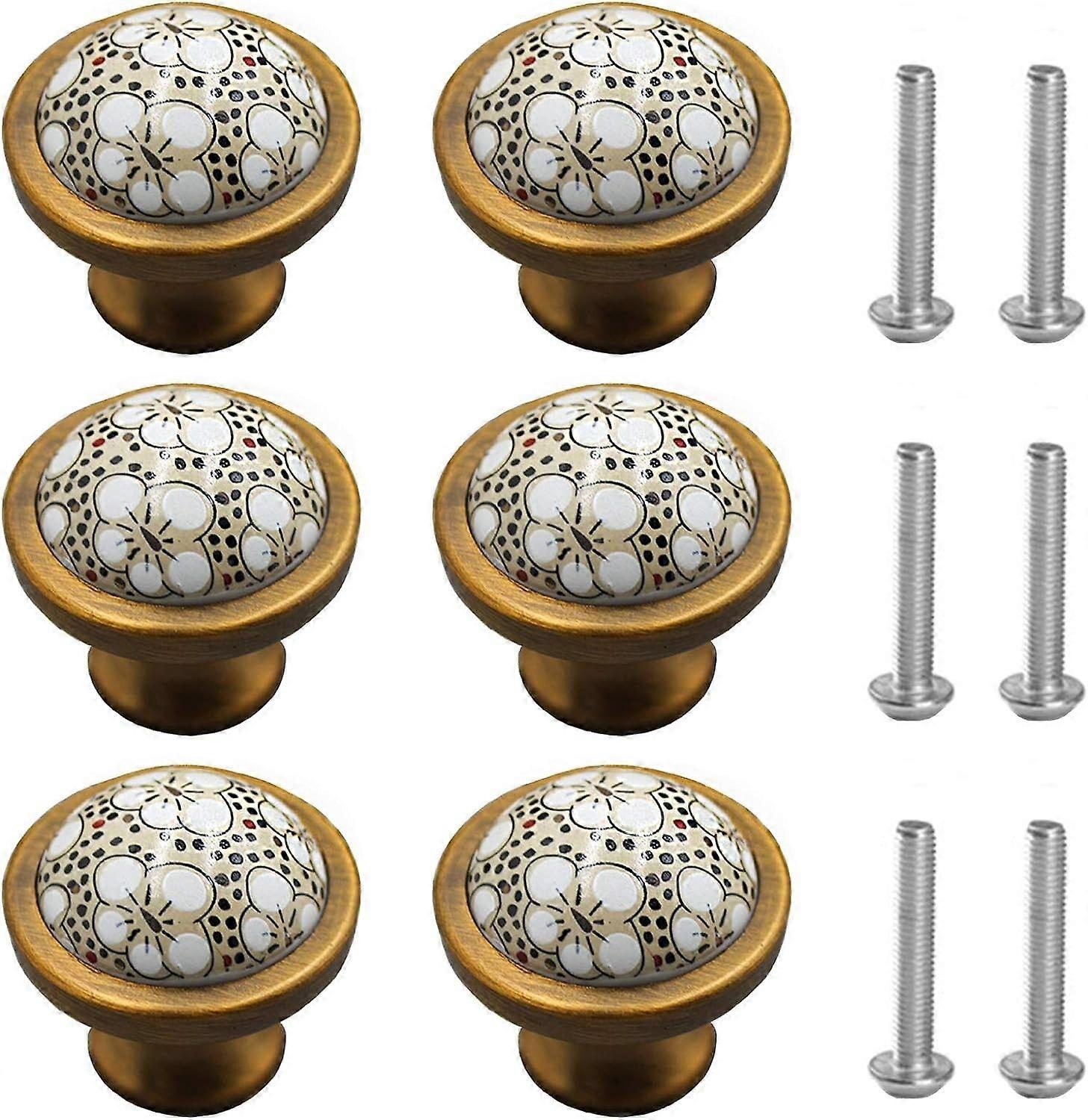 6-Piece Set of Ceramic Cabinet Handles, Drawer Handles, Furniture Decor, 35mm Door and Drawer Handles, Antique Bronze Finish