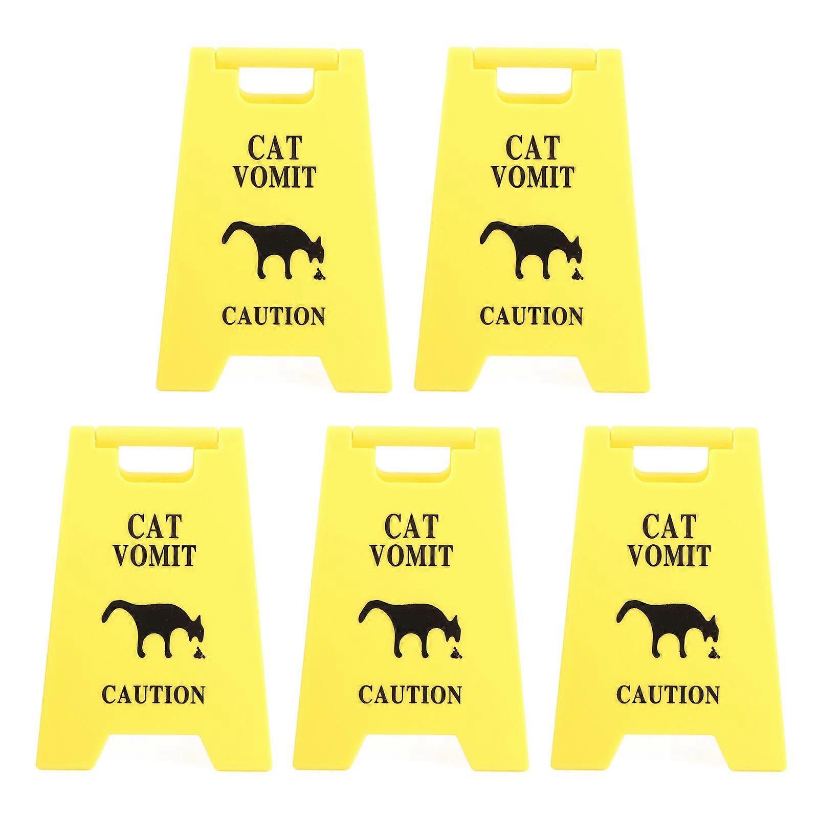 5PCS Cat Vomit Funny Long Lasting Waterproofing ABS Plastic Pet Warning Vomiting Sign 2.64 X 3.94in