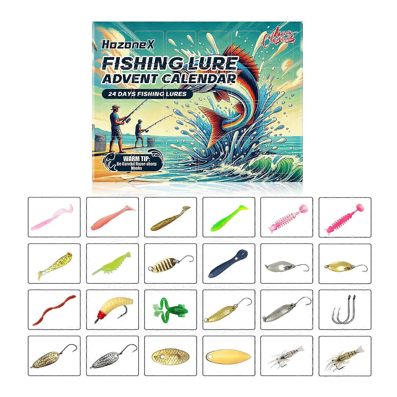 Christmas Fishing Bait Set - 24-Piece Holiday Countdown Calendar with Durable Silicone & Stainless Steel Hooks & Lures Perfect Gift for Anglers, Vers