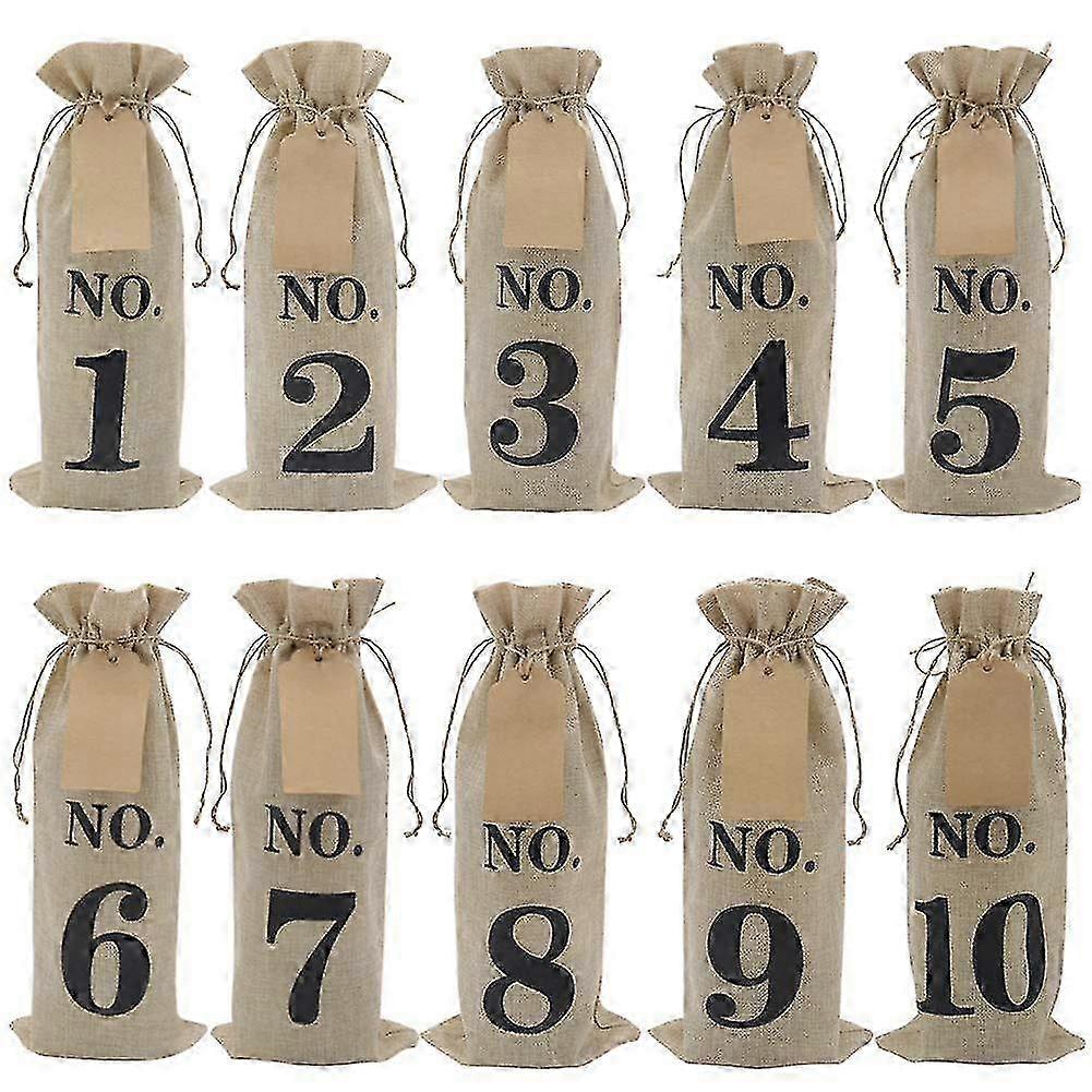 Wine Bottle Bags for Blind Tasting 10 Pack Natural Burlap Hessian Fabric with Numbered Tags Gift Wrapping 12 x 4.5 Inches