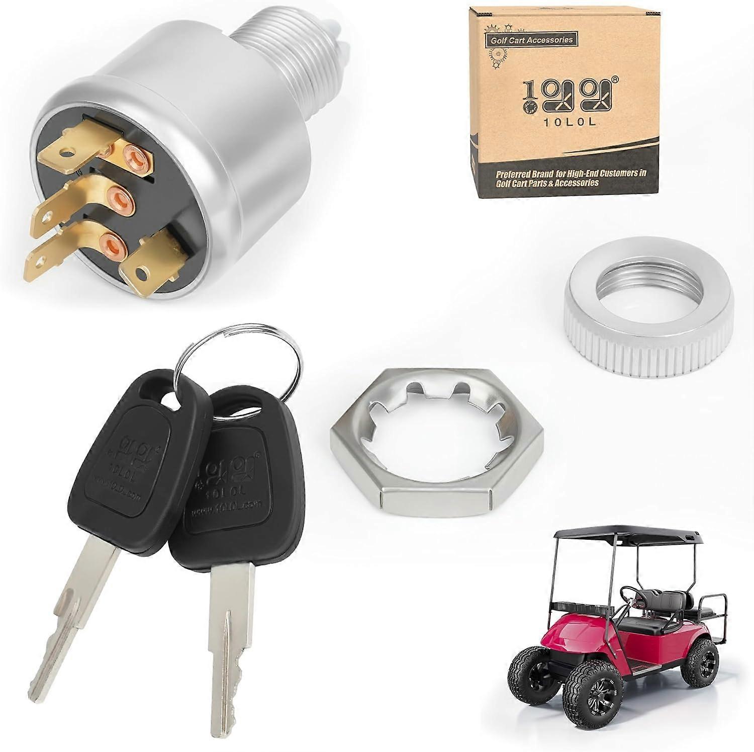 Golf Cart Starter Ignition Key Switch for EZGO Electric Golf Cart 33639G01, 4 Terminal Prongs (Standard Key)