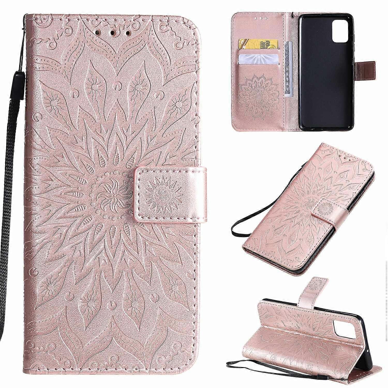 M9y For Samsung Galaxy A51 Phone Case Sunflower Imprinted Leather t0g Wallet Stand Cover with Strap