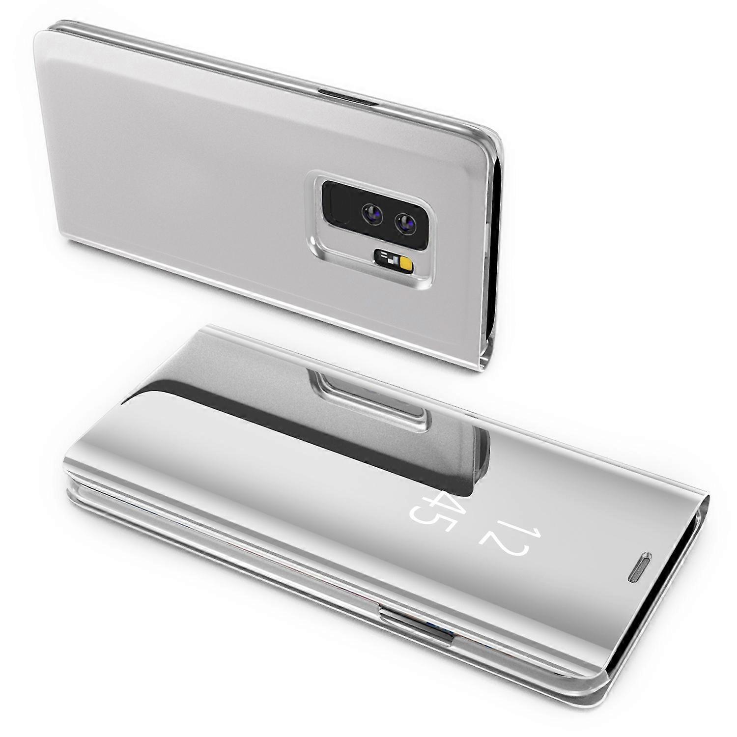 Z4S For Samsung Galaxy S9+ G965 Plated Mirror Surface Information s0h View Stand Leather Smart Cover