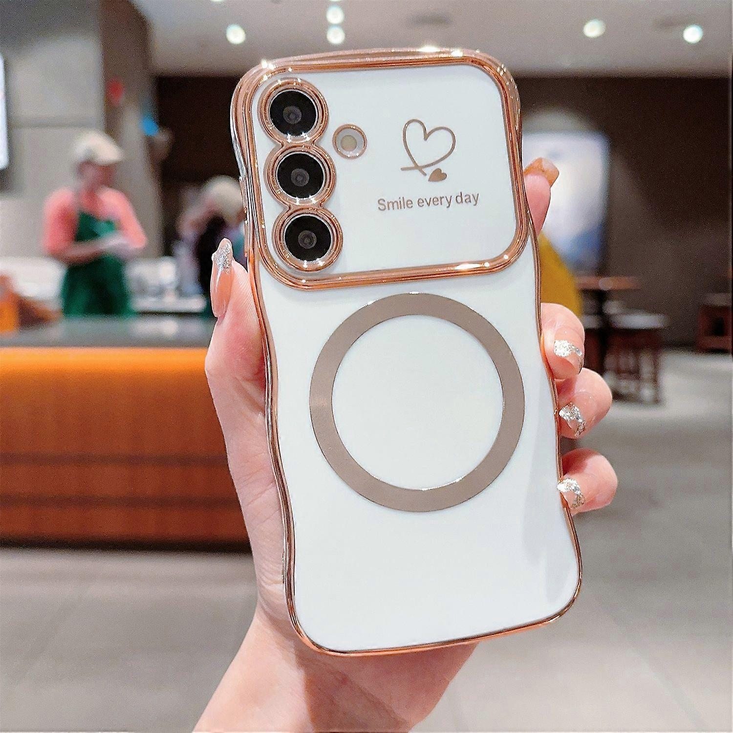 s4b For Samsung Galaxy S25 Magnetic Case Electroplating Curly Frame F9T TPU Phone Cover Large Window
